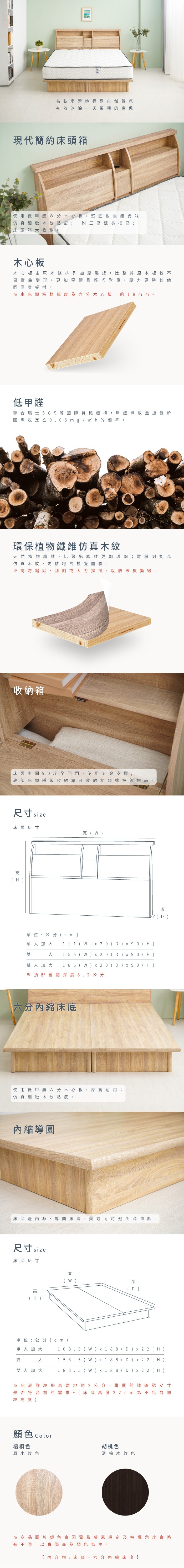 傢俱工場-派蒙 簡約收納房間2件組(床頭箱+六分床底)-單大3.5尺古橡