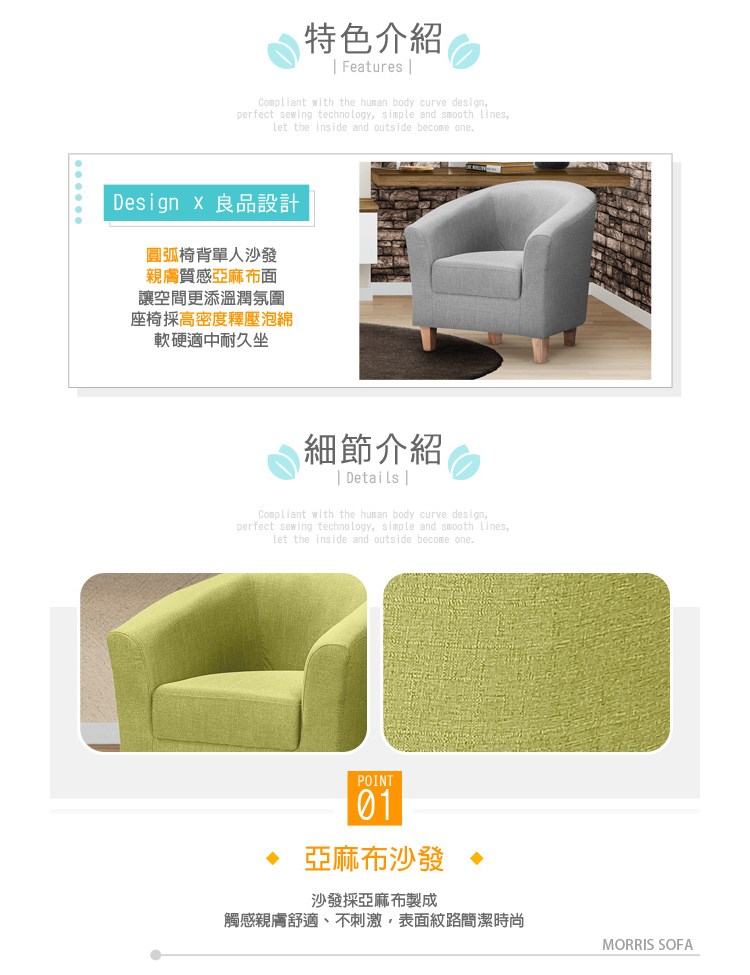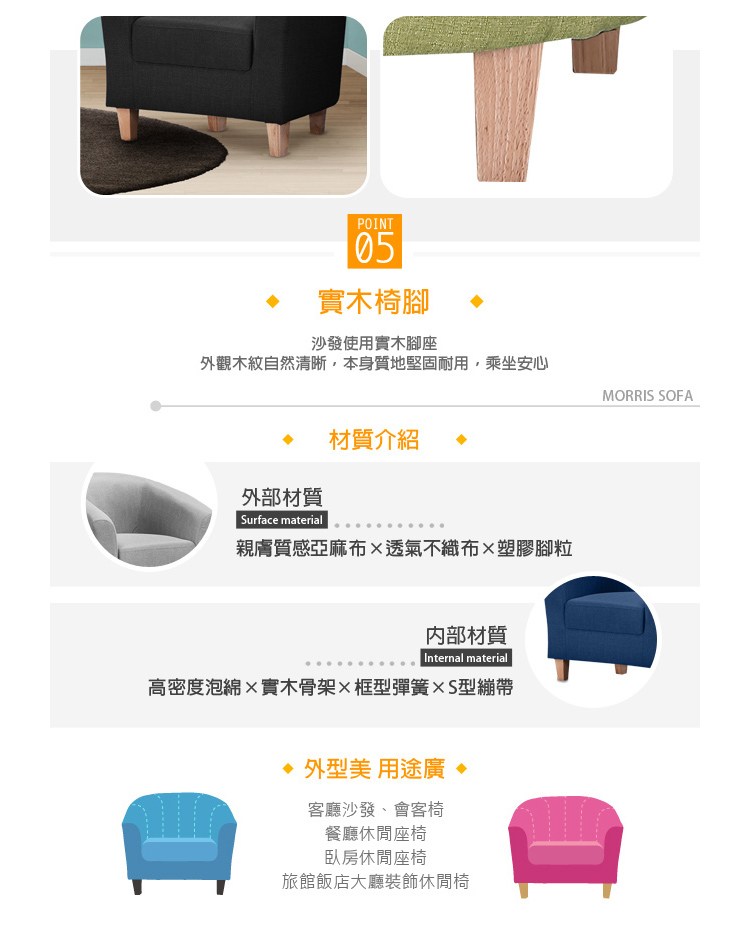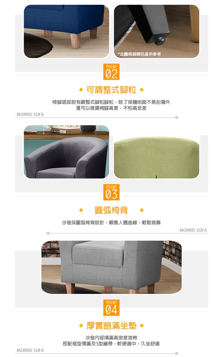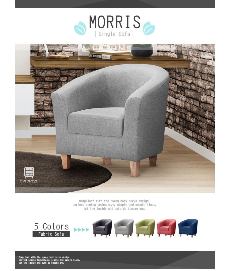 點我下載【Hampton 漢汀堡】莫里斯布面單人沙發-多色可選寶石藍