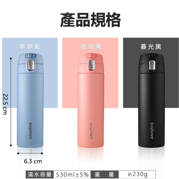 康寧陶瓷易潔層不鏽鋼彈跳保溫杯530ml 混色