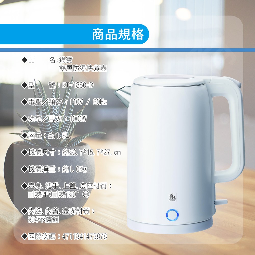 鍋寶雙層防燙快煮壺(KT-1860-D)