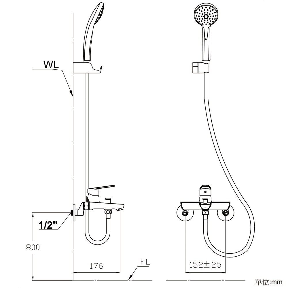 【巧時代】7765系花灑沐浴龍頭-無下出水口