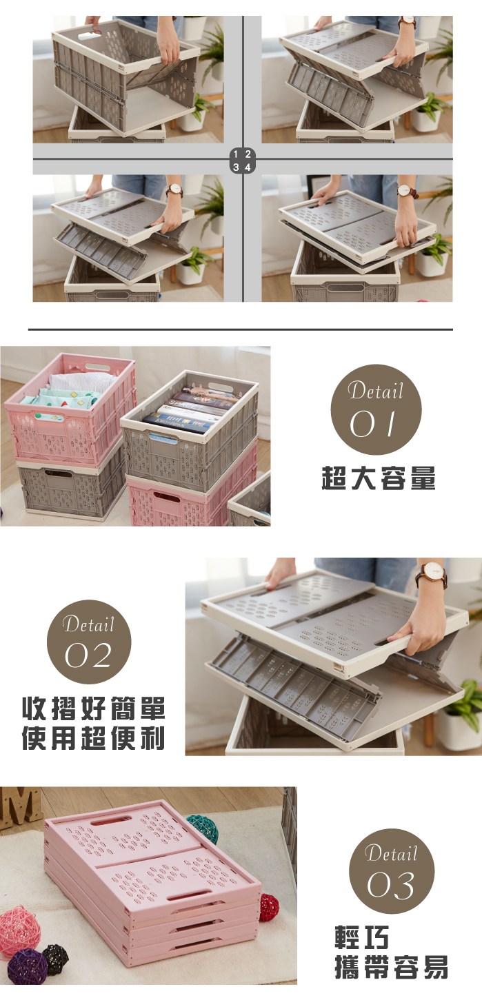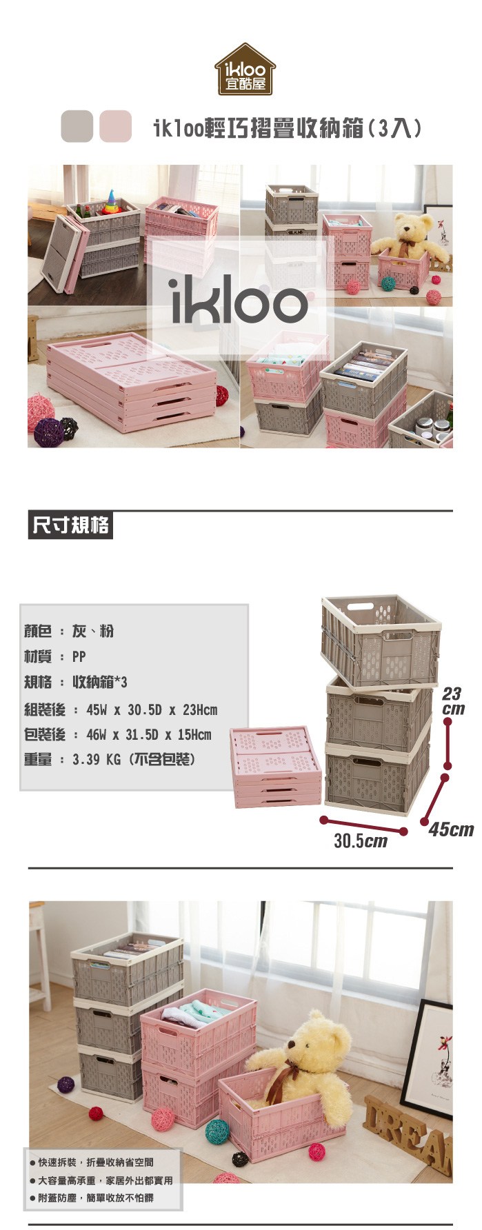 【ikloo】輕巧折疊收納箱(3入組)粉