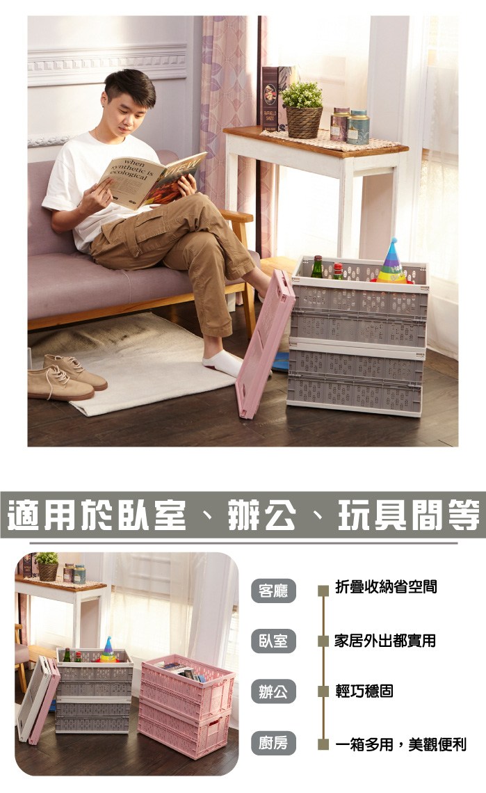 【樂邦】可疊加可折疊三開門摺疊整理置物收納箱(大45L/2入)