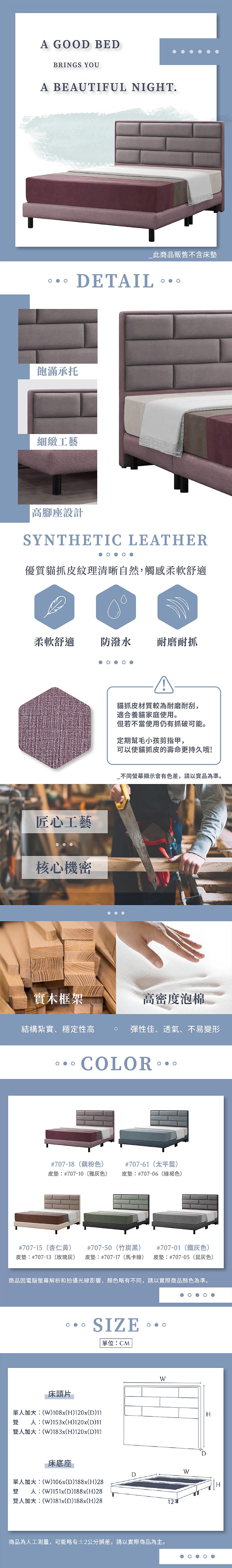 【obis】MABEL現代風貓抓皮雙人特大6*7尺床組(床頭+床底)/訂製顏色