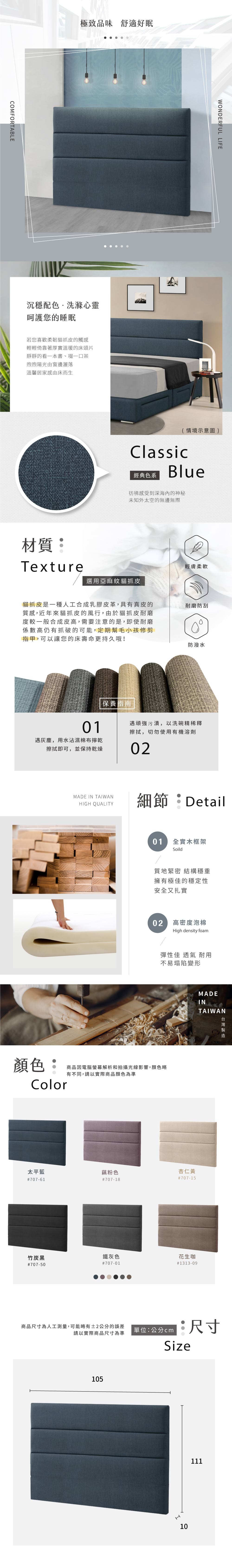 【顛覆設計】特斯肯原橡雙色貓抓皮靠枕床頭箱(雙大6尺)