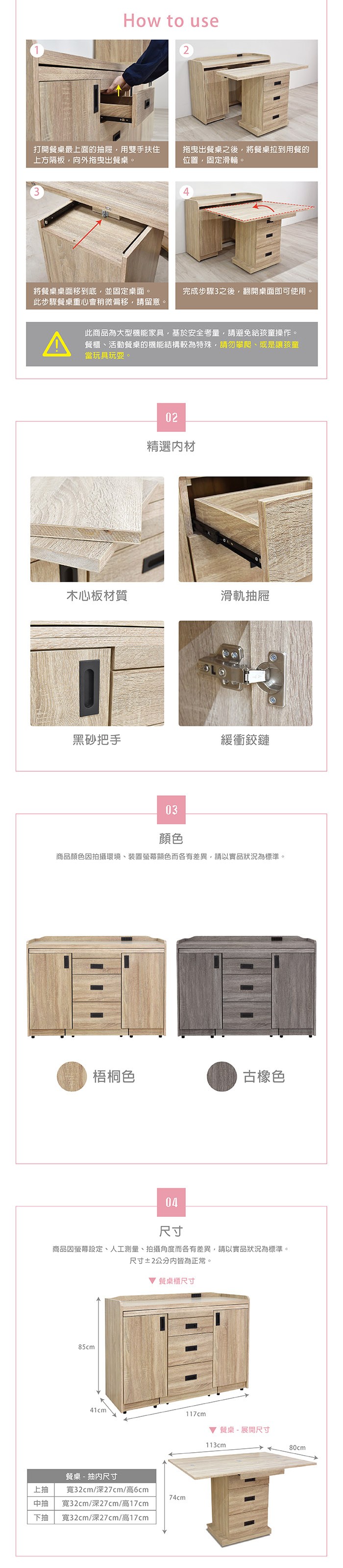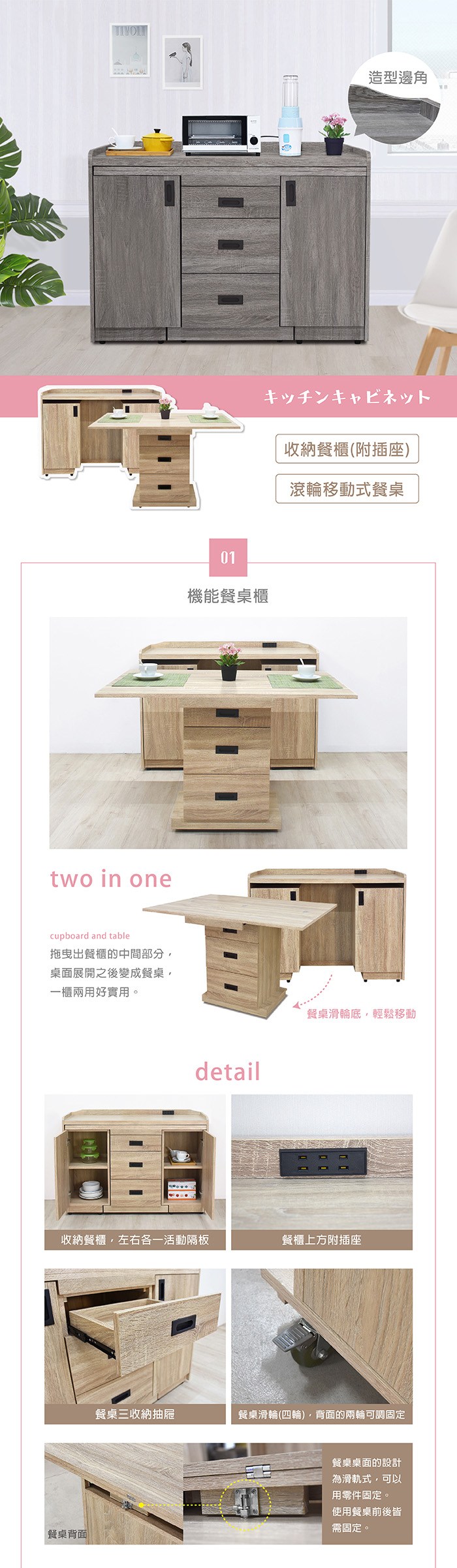 IHouse-匠人 4尺二件式移動餐桌櫃/摺疊桌/餐櫃/餐桌(附插座)梧桐
