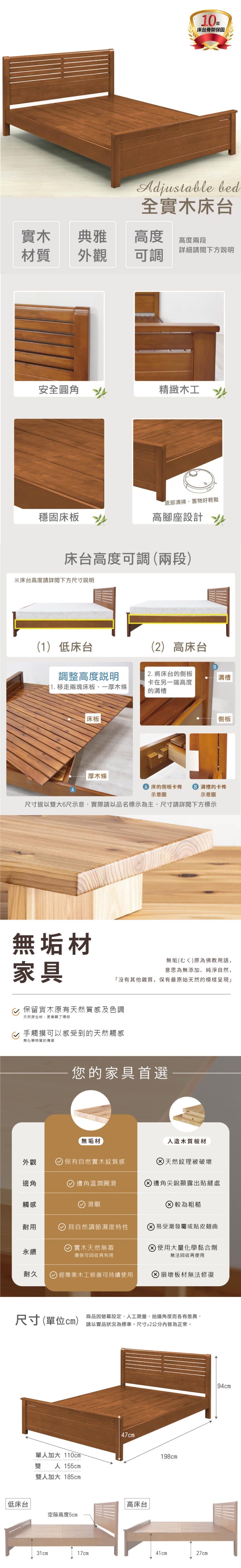 Homelike 喜家居雙人加大6尺日式床台組(兩色可選)(1909)梧桐木