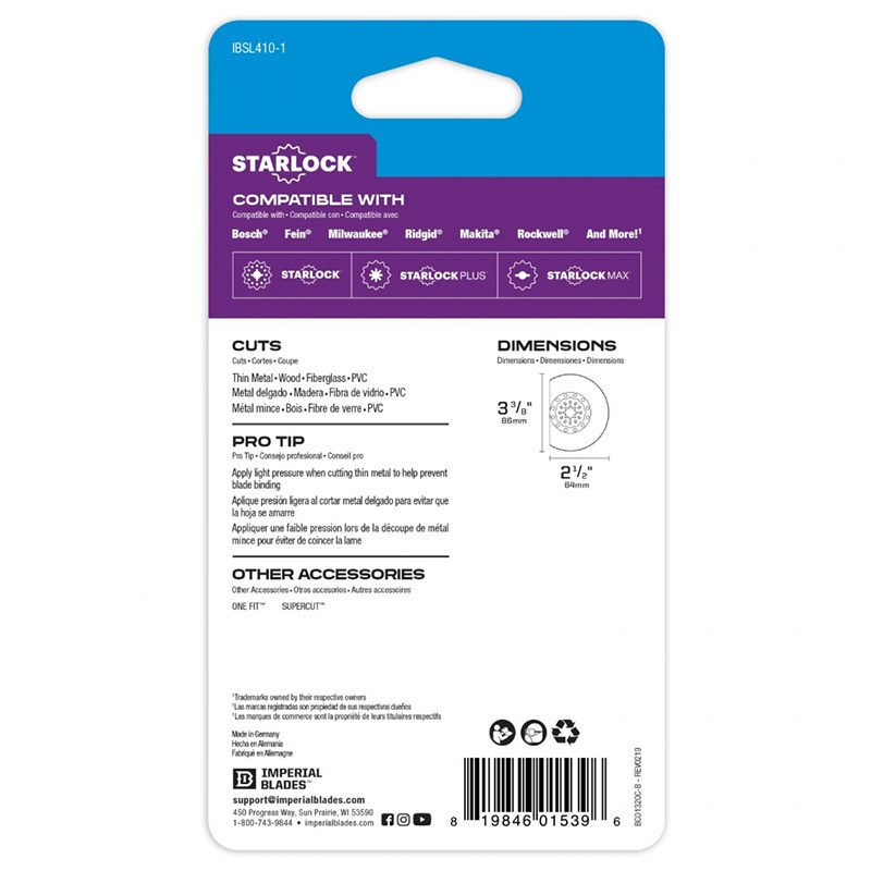 IMPERIAL BLADES Starlock 磨切機鋸片 寬版 金屬多用途 BIM 型號IBSL340-1 規格 1-3/4(44.4mm) 1個