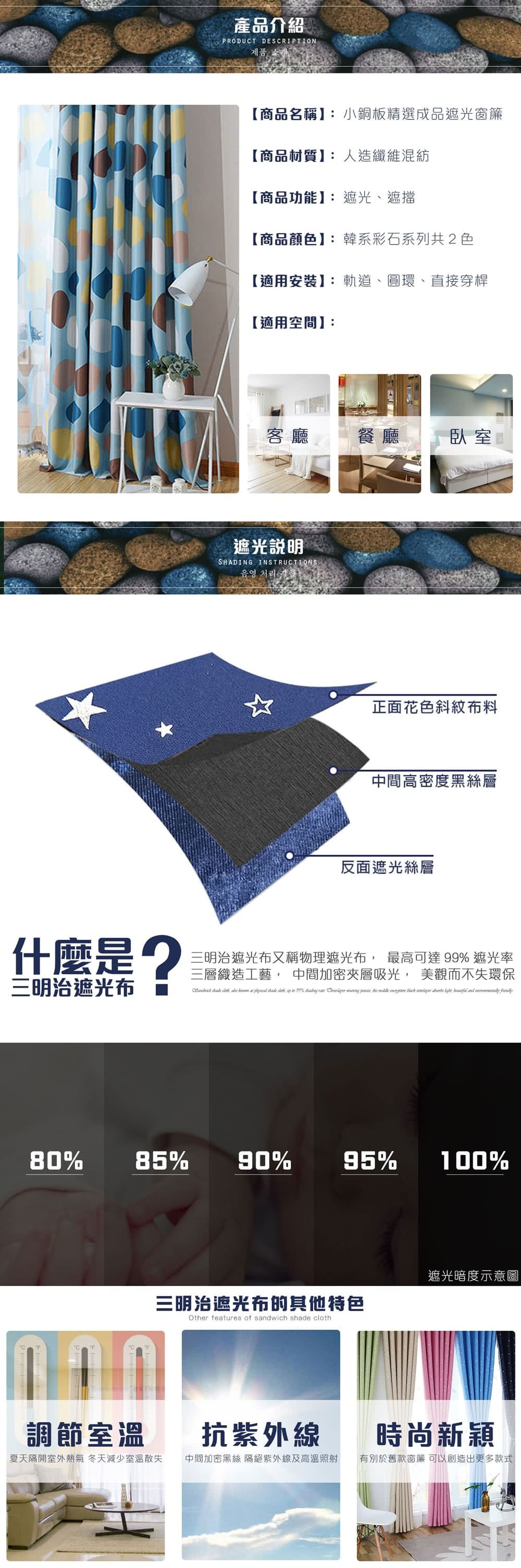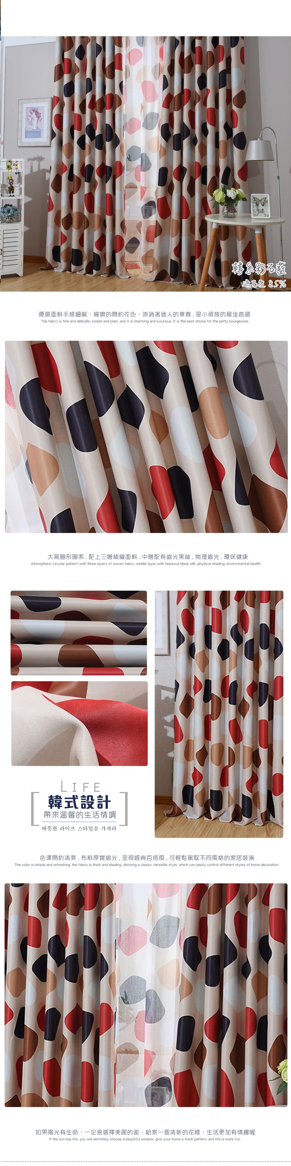 小銅板-韓系彩石遮光窗簾】寬100X高130-2片入-總寬200公分韓系彩石紅