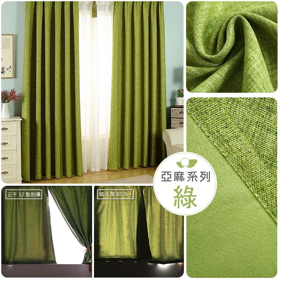 【小銅板-亞麻遮光窗簾】寬100X高165-2片入-總寬200公分亞麻綠