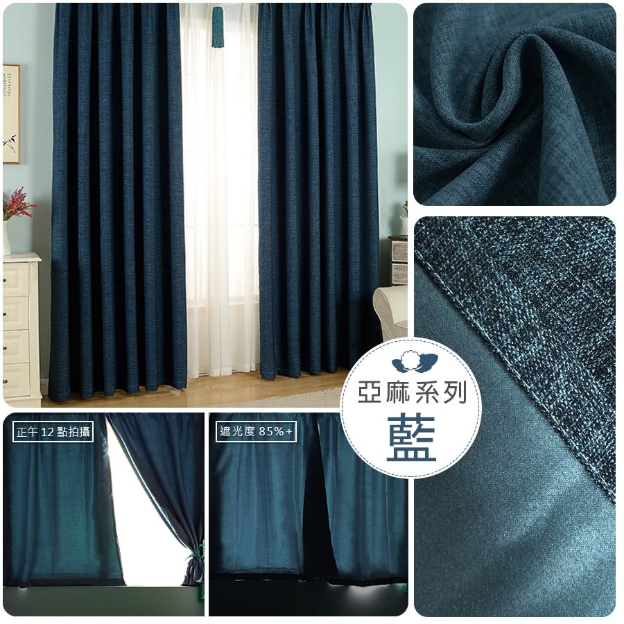 厚底窗簾 時尚單寧 100×240cm 台灣製 2片1組 遮光 牛仔布 可水洗 半腰窗 藍色 風水窗簾 兩倍抓皺
