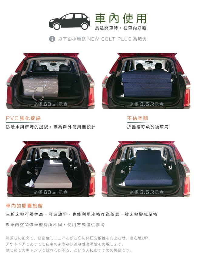 假日與親朋好友愉快的開車出遊、露營。充實的一整天,耗盡了力氣,不用再困擾睡的地方是否清潔、舒適,擔心睡不好,讓隔天玩得不盡興。【C'est Chic】二代目日式三折獨立筒彈簧床墊-幅80cm(加厚)-灰,好攜帶、省空間,輕鬆展開就能佈置完成,出門在外,也能享受如同家中床墊的良好睡眠品質,在車內使用,瞬間成為膠囊旅館!貼心附贈 PVC 強化提袋,防潑水與髒污,耐用久,專為戶外攜帶使用而設計。