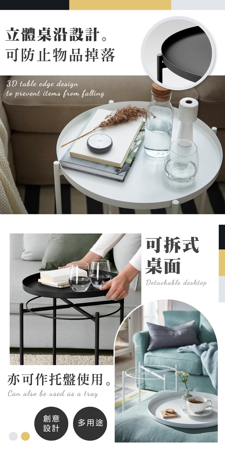 桌面可分離,當成托盤移動使用,線條簡約金屬椅腳,美觀承重高,附贈防刮腳墊、耐磨並保護地板,