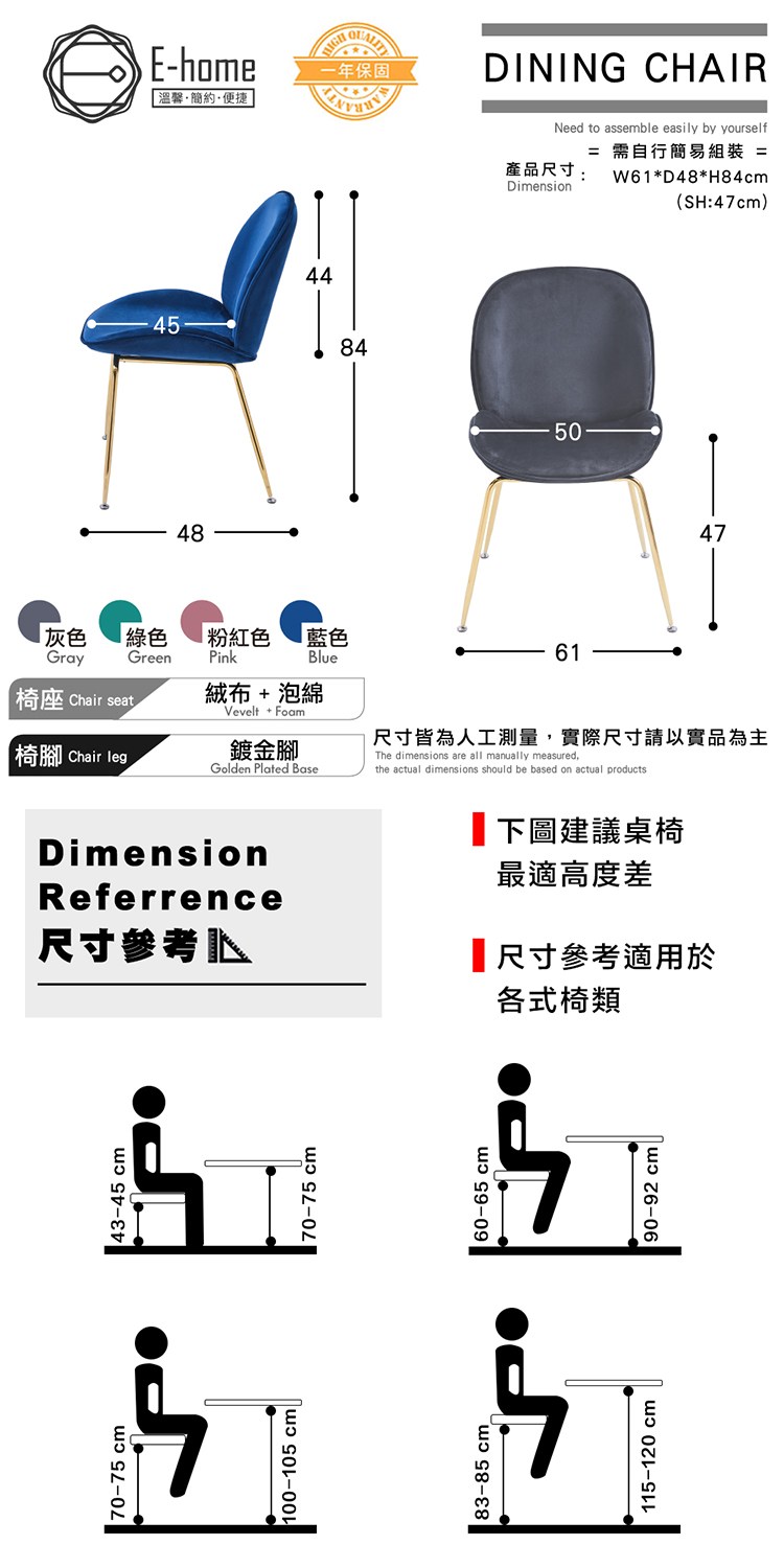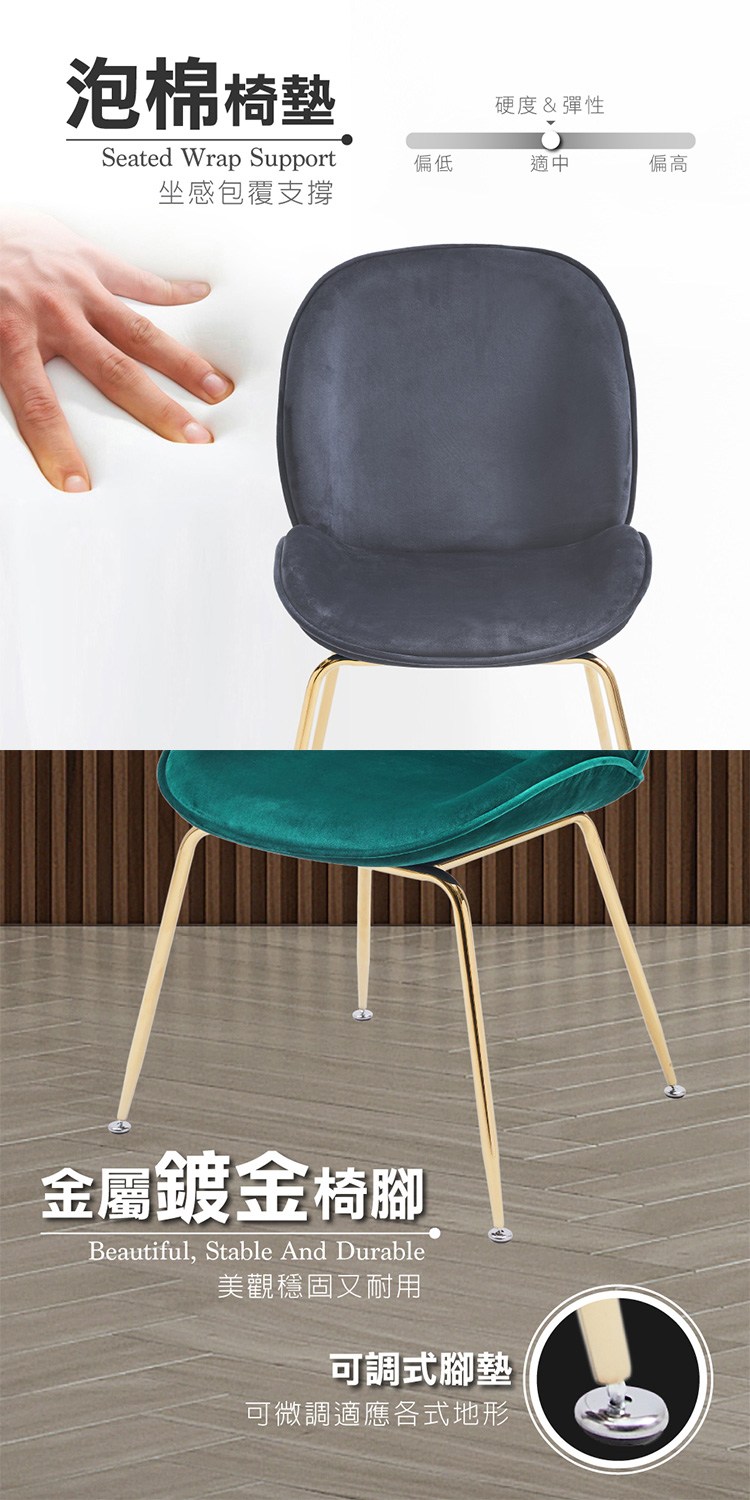 * 金屬鍍金椅腳,美觀穩固又耐用