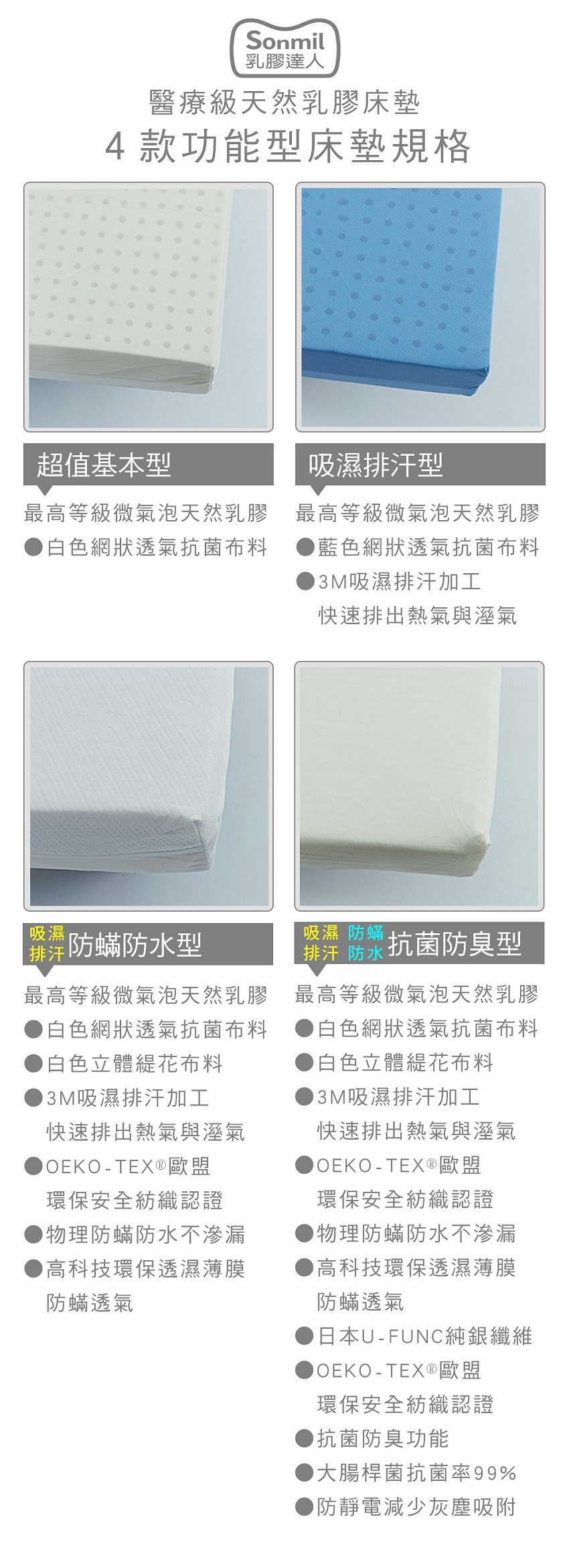 主商品:舒蜜爾sonmil乳膠床墊 醫療級 3M吸濕排汗型