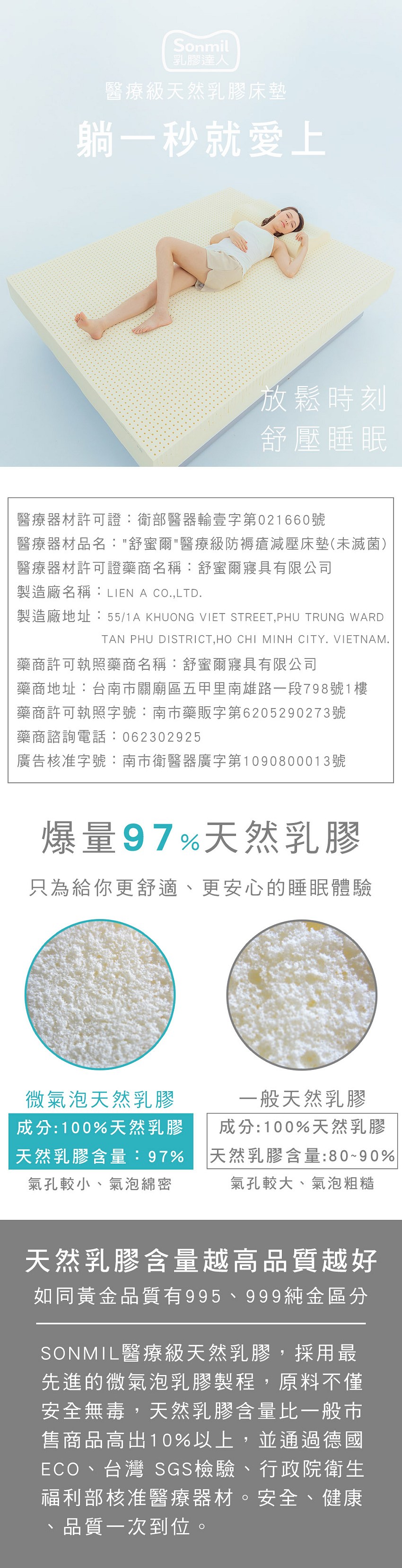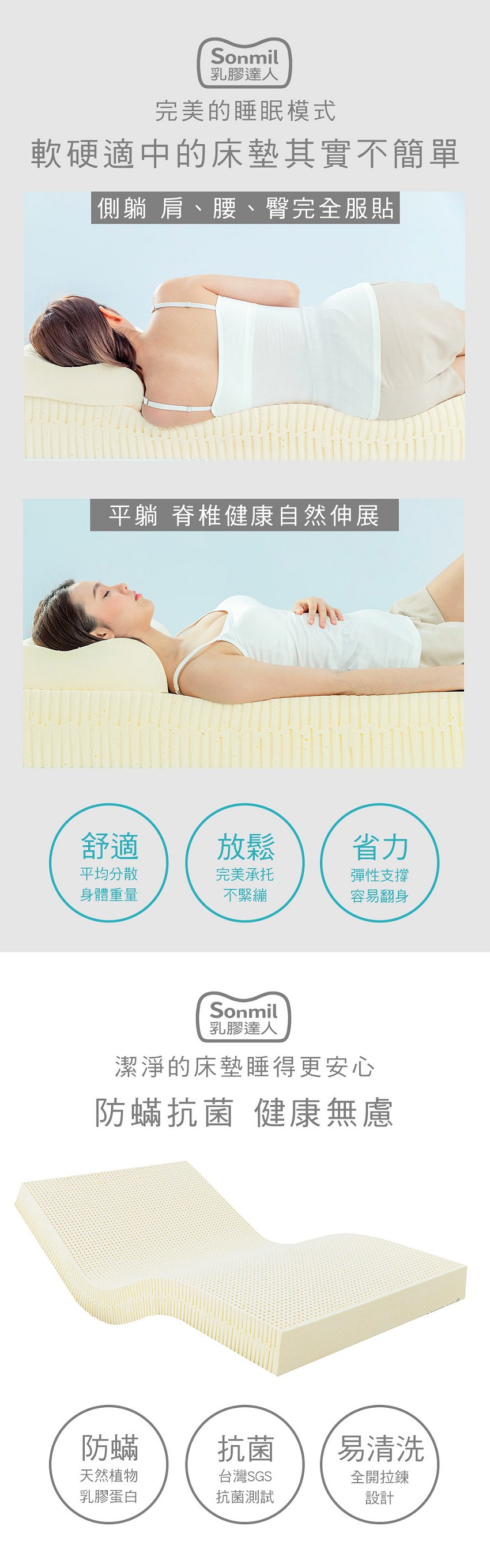主商品:舒蜜爾sonmil乳膠床墊 醫療級 銀纖維抗菌防臭型(包含3M吸濕排汗、防蟎防水透氣機能)