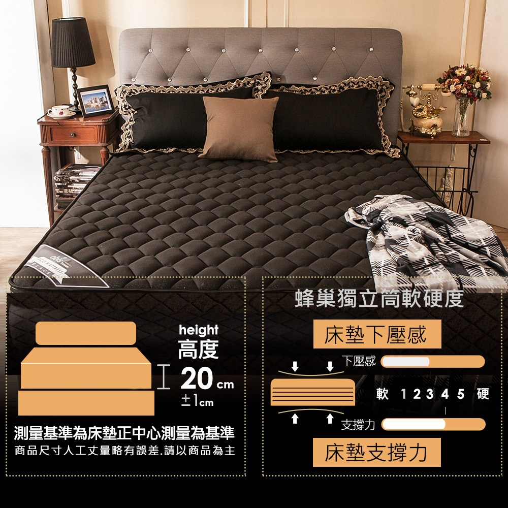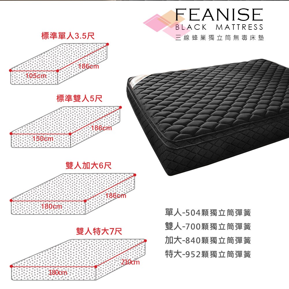 【obis】鑽黑系列_FEANISE三線蜂巢獨立筒無毒床墊單人3.5X6.2尺(20cm)