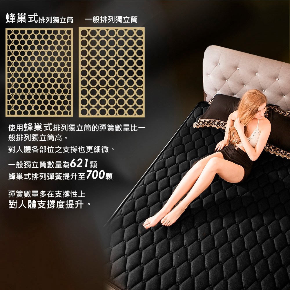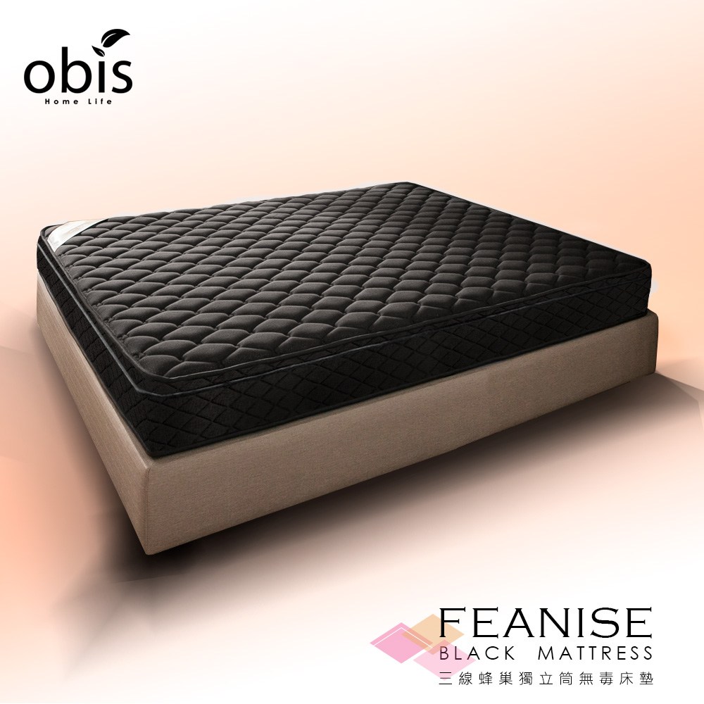 【obis】鑽黑系列_FEANISE三線蜂巢獨立筒無毒床墊雙人5X6.2尺(20cm)