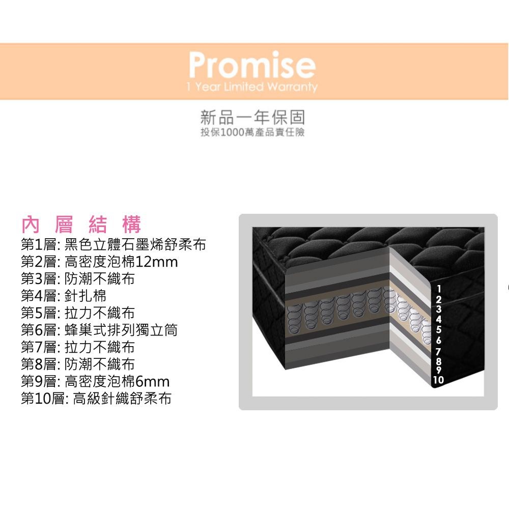 【obis】鑽黑系列_FEANISE三線奈米石墨烯蜂巢獨立筒無毒床墊單人3.5尺