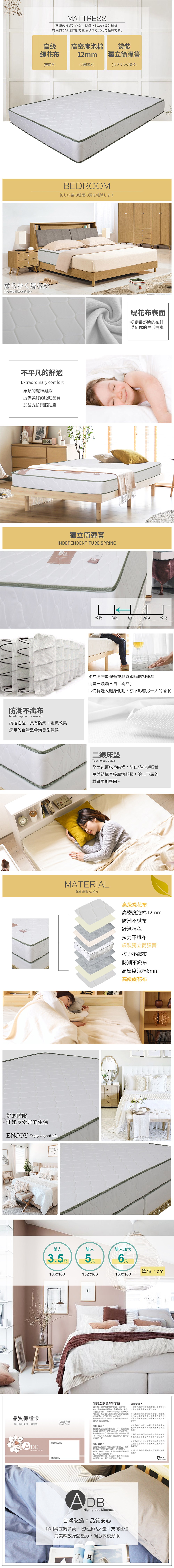 點我下載【多瓦娜】柯特側邊加強支撐雙人加大獨立筒床墊-6尺150-45-C