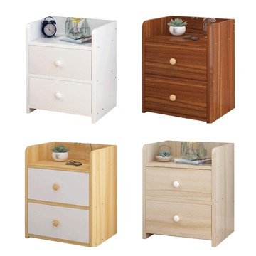 【慢慢家居】雙抽屜簡約收納床頭櫃原木撞色