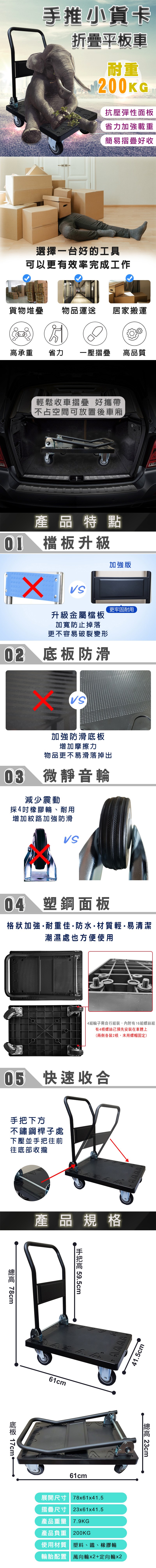 (2入組) 100%台灣製 摺疊重型手推車 板車 HS-850A