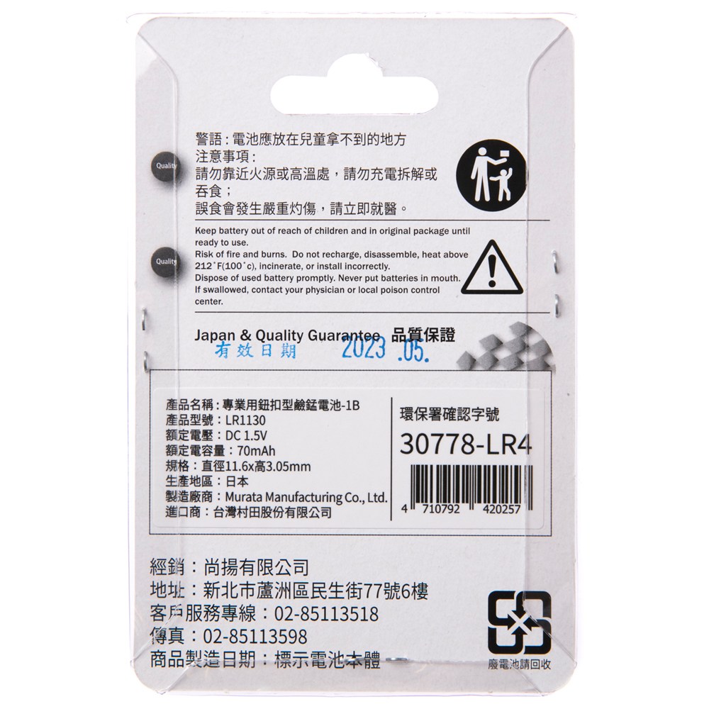 村田電池 LR1130鹼性鈕扣電池單顆 卡裝