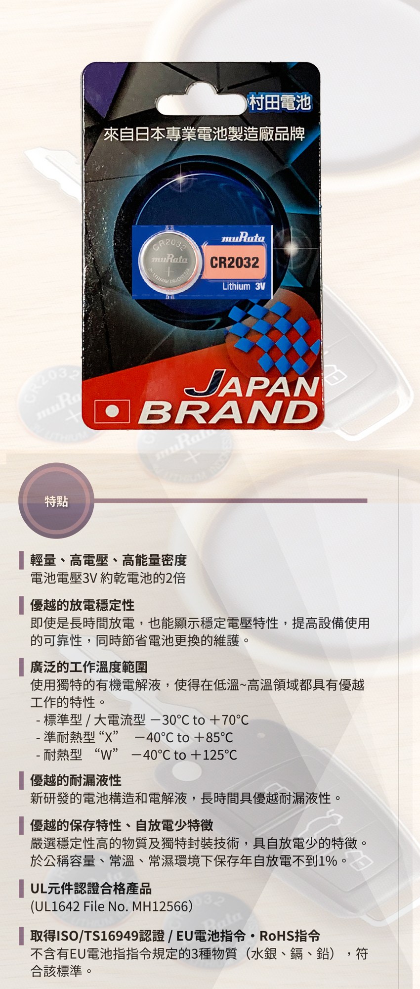 村田電池CR1632鋰電池 10入日本製造