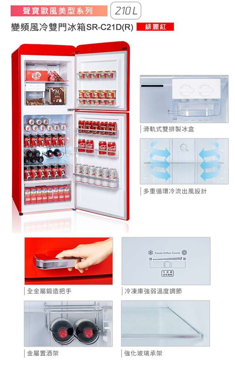 SAMPO聲寶 210公升1級能效歐風美型雙門冰箱 SR-C21D(R)~含拆箱定位+舊機回收