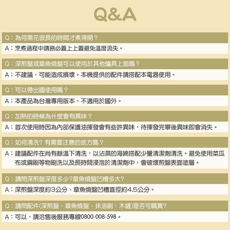 2. 用畢待本機完全冷卻後才可以取「深煎盤」及「章魚燒盤」,避免燙傷。