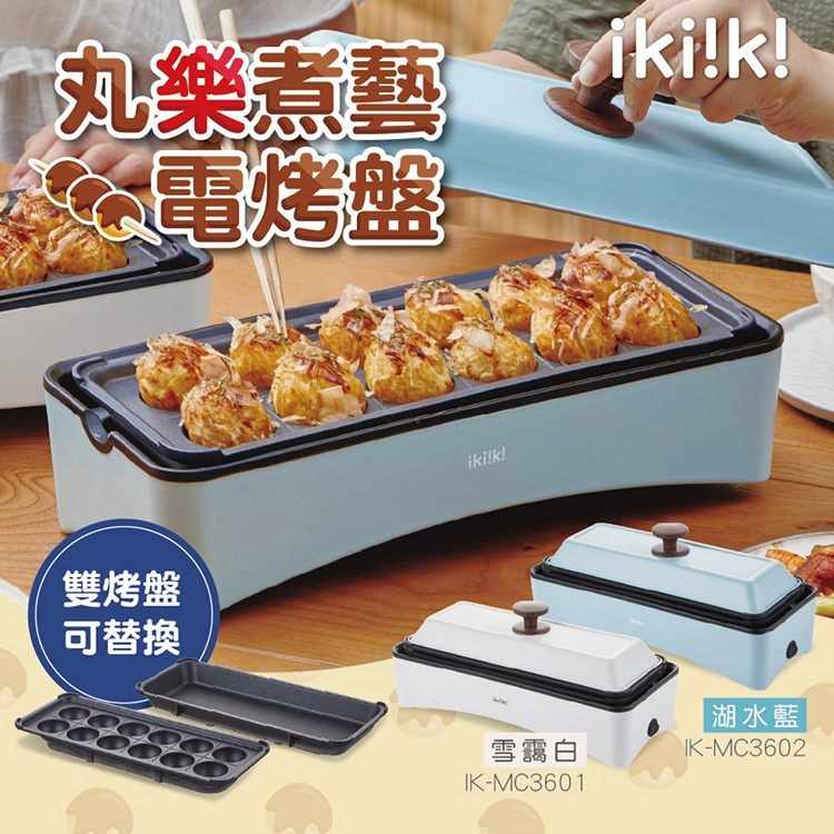 ikiiki伊崎家電 丸樂煮藝電烤盤/章魚燒機(雙烤盤可替換)- 湖水藍 IK-MC3602