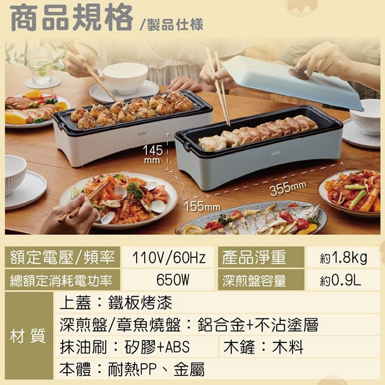 ◆ 附深煎盤、章魚燒兩種烤盤,隨心料理超方便