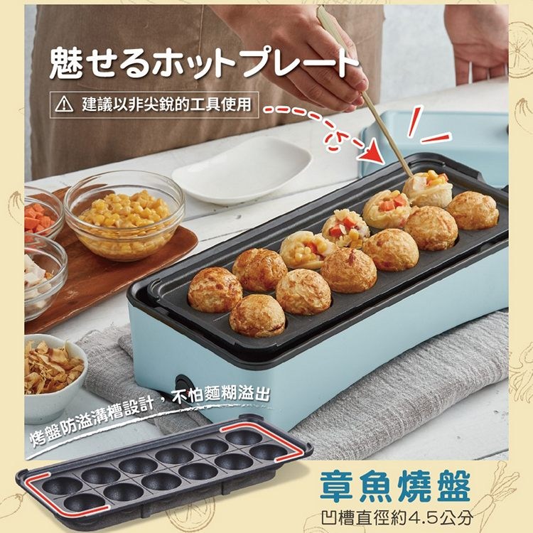 ◆ 章魚燒烤盤防溢溝槽貼心設計,不怕麵糊溢出