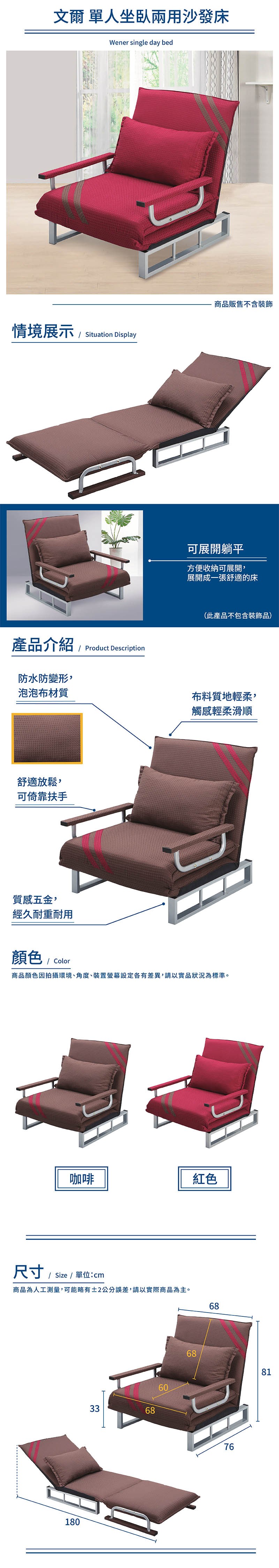 IHouse-文爾 單人坐臥兩用沙發床咖啡色