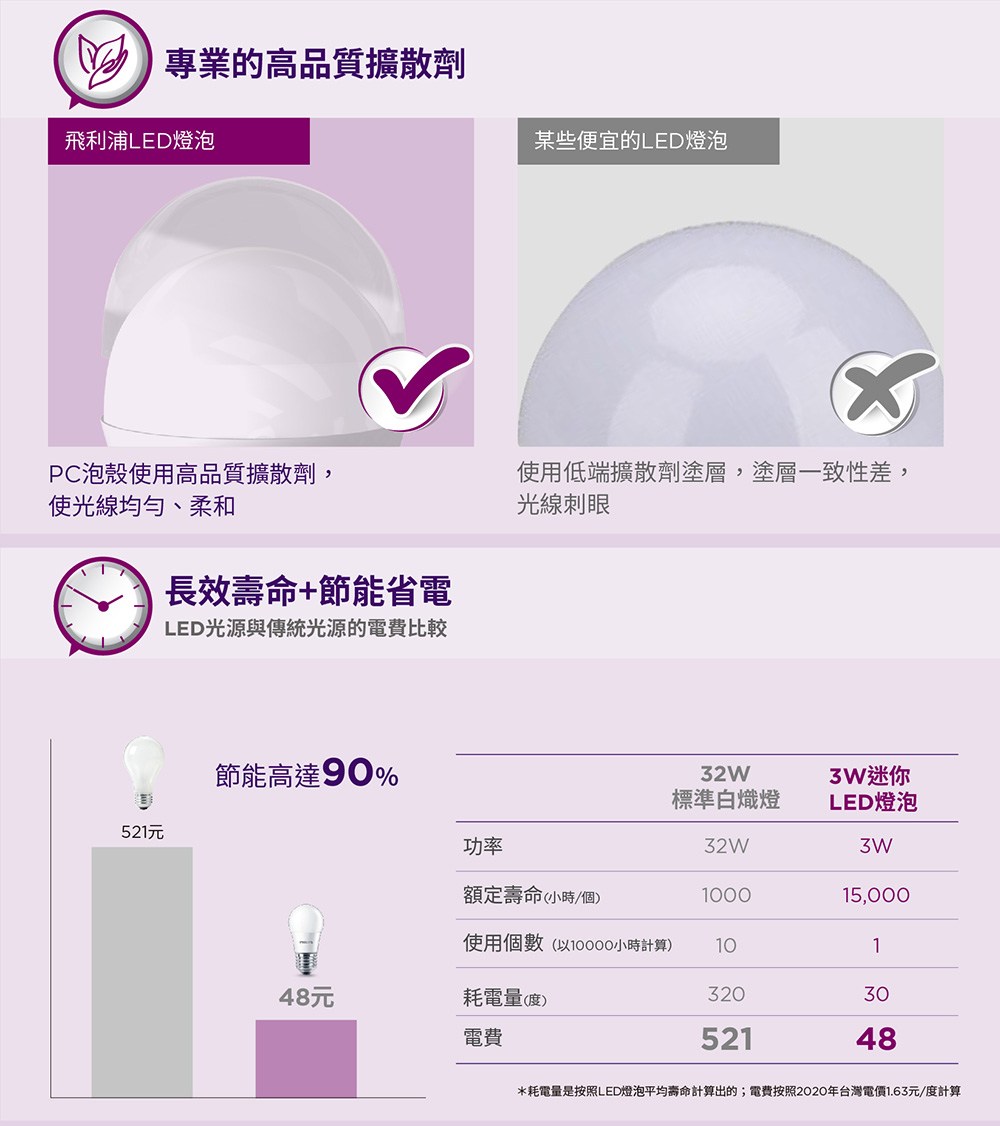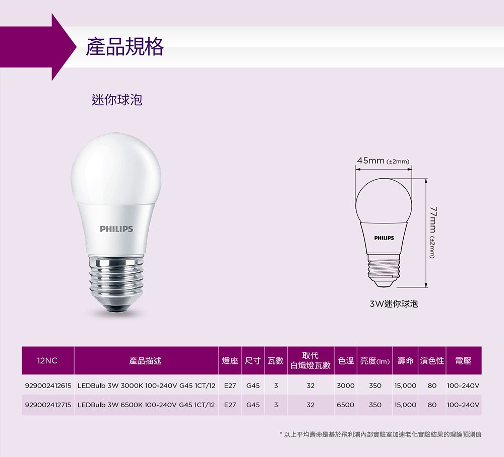 飛利浦 3W LED迷你燈泡 晝光色