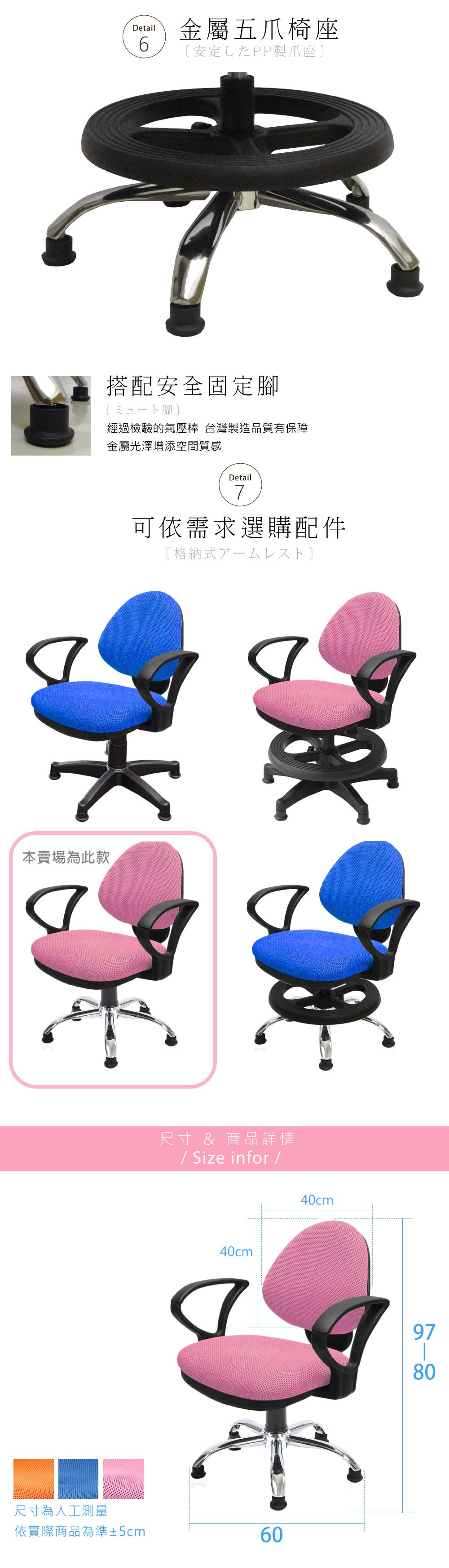 【A1】漢妮多彩活動式D扶手兒童成長電腦椅-2入(箱裝出貨)粉紅色