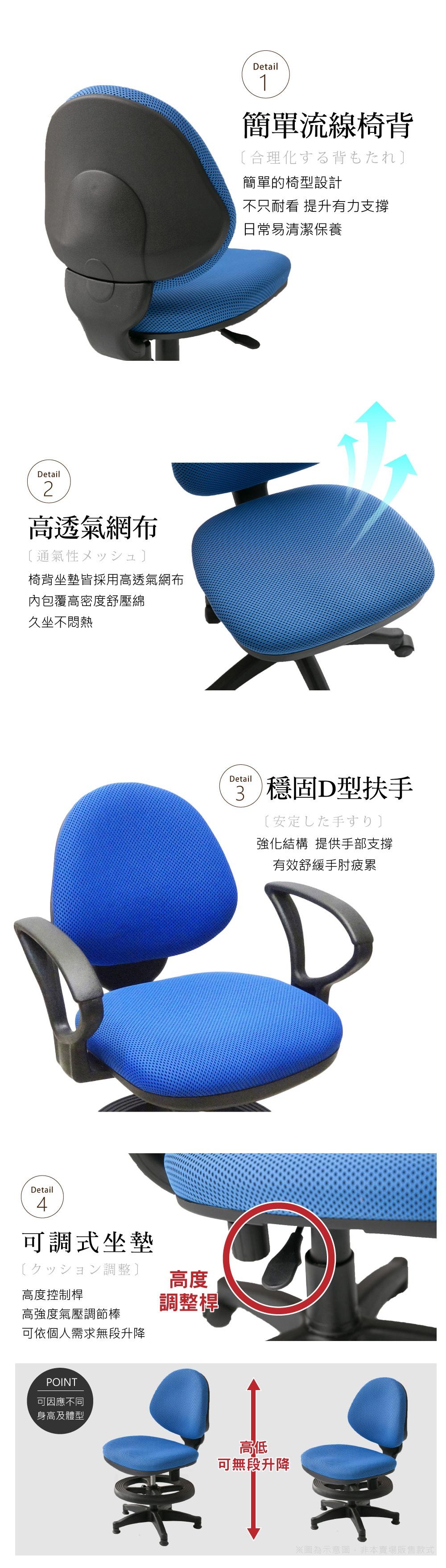 【A1】漢妮多彩固定式人體工學D扶手電腦椅/辦公椅-1入(箱裝出貨)藍色