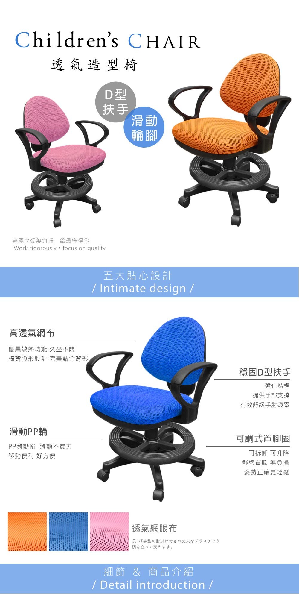 【A1】漢妮多彩活動式D扶手兒童成長電腦椅-1入(箱裝出貨)橘色