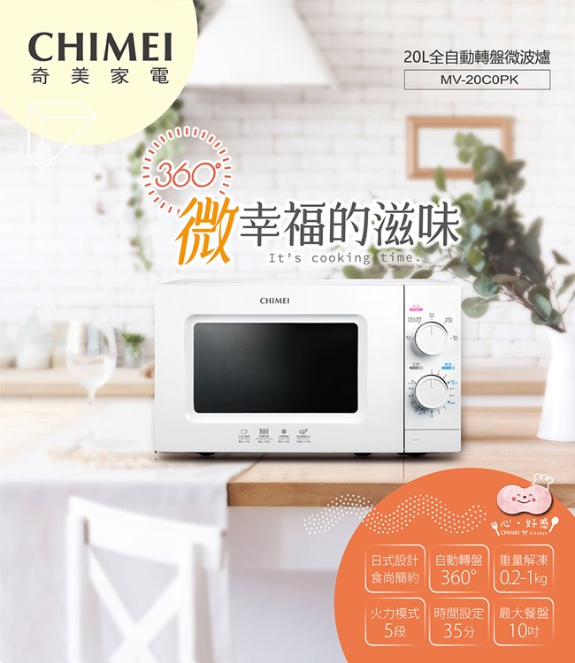 奇美 CHIMEI 轉盤式360度 20L 微波爐 /台 MV-20C0PK|領券最高折$220