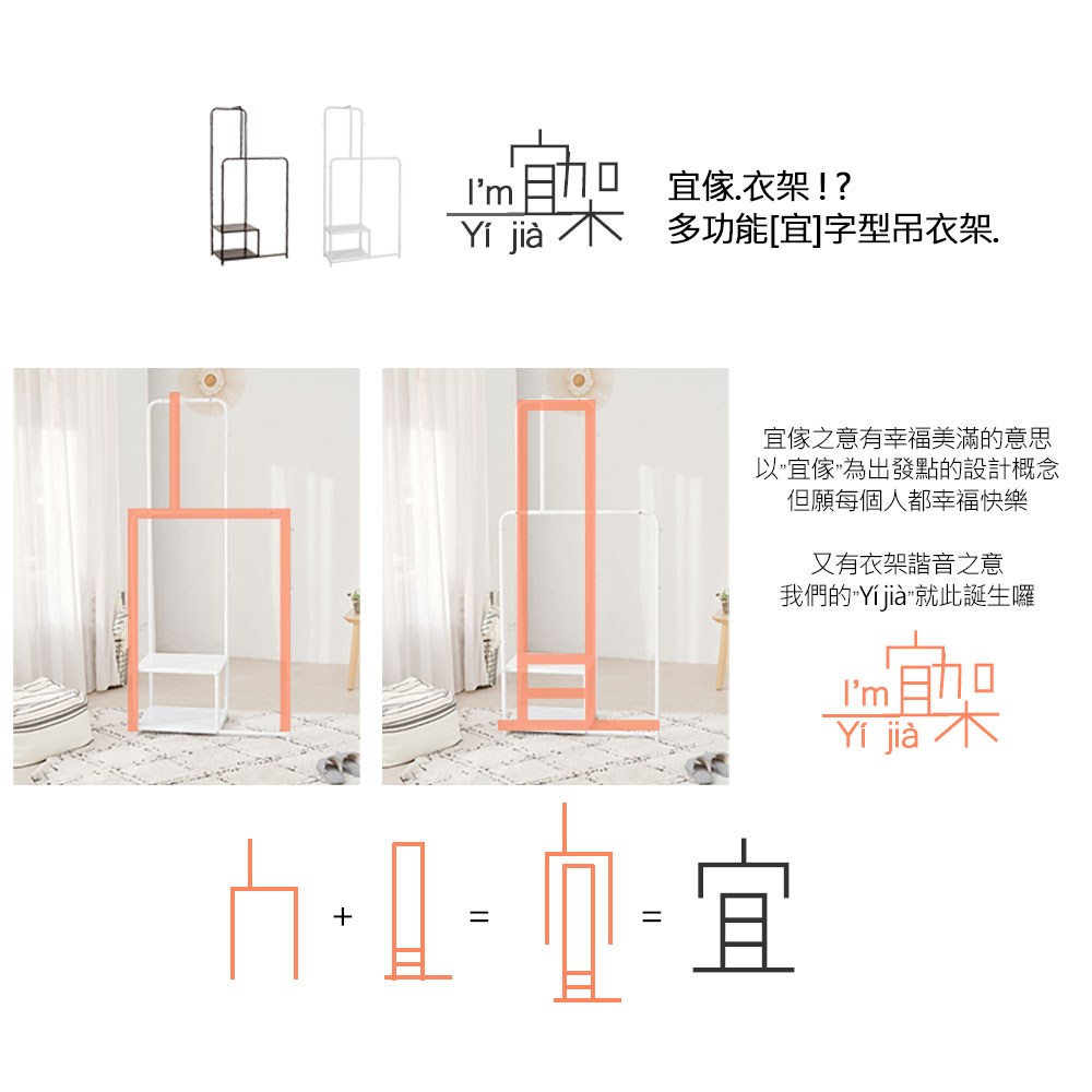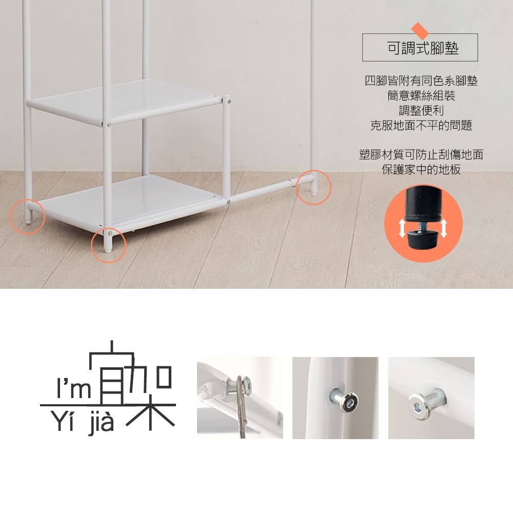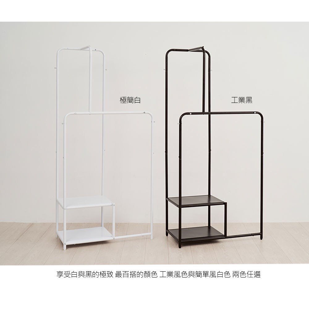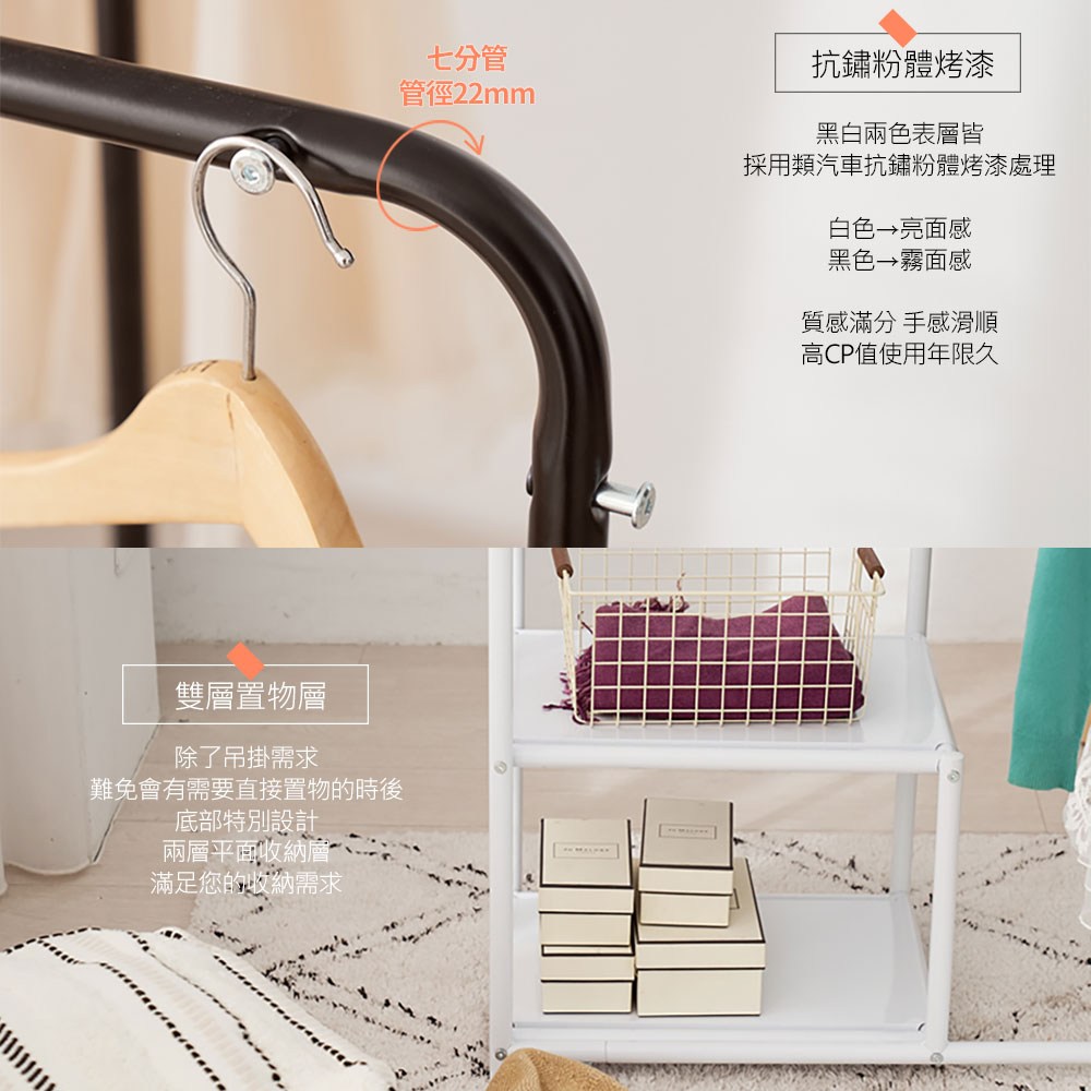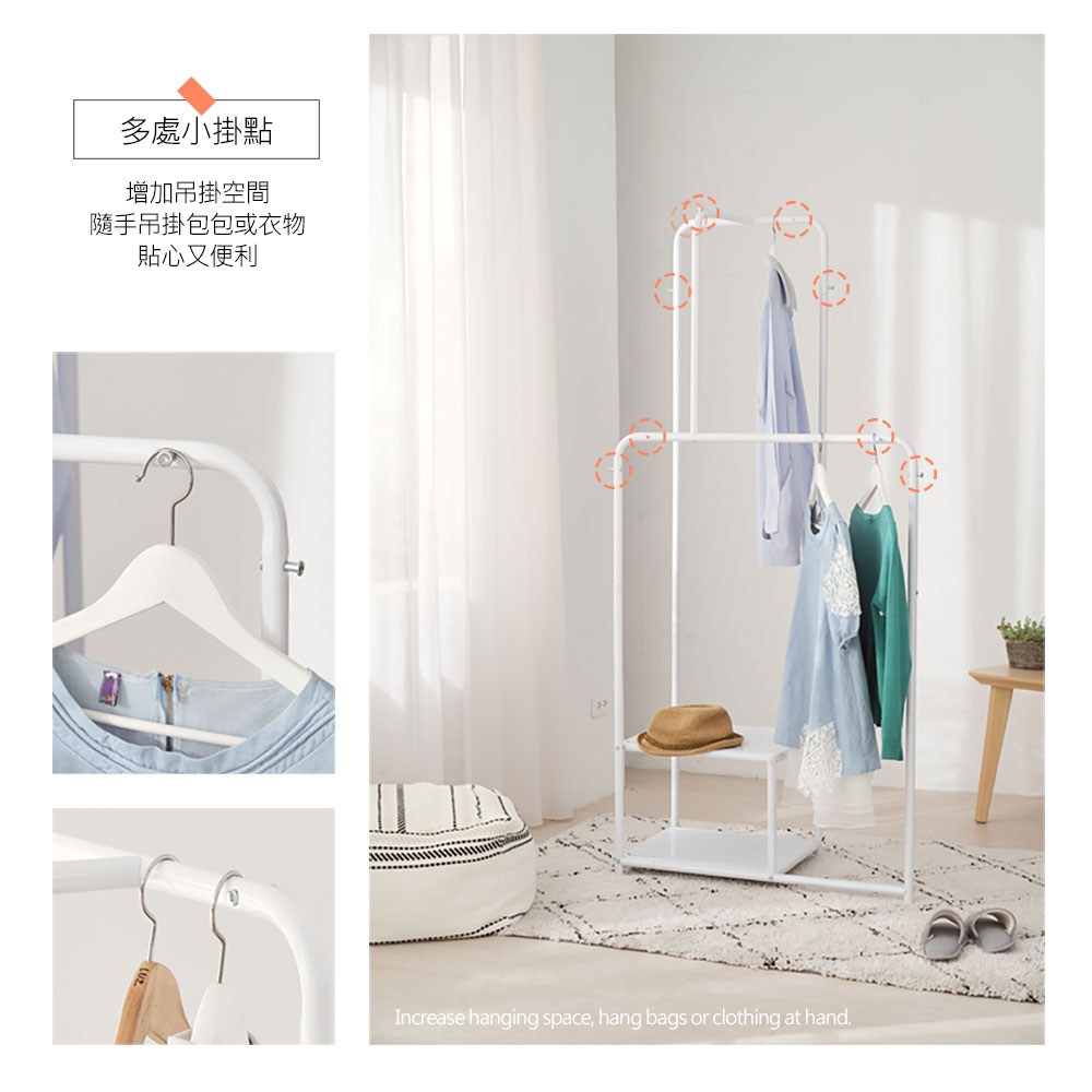 Life 日式簡約 多功能雙層落地衣帽架/掛衣架/置物架 鋼架材質 帶煞車滾輪設計 145 x 60 x 30cm 鋼琴白
