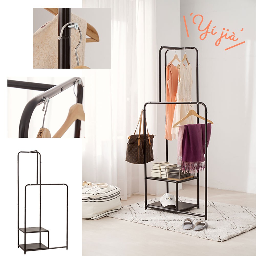 Life 日式簡約 多功能雙層落地衣帽架 碳鋼管 塑膠 消光黑 約 60cm x 30cm x 145cm ±5%