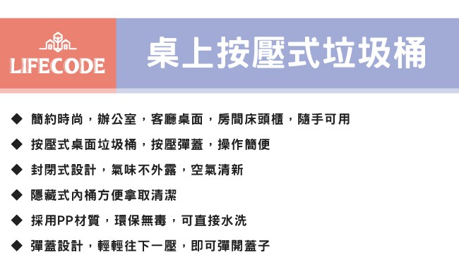 點我下載【LIFECODE】桌上按壓式垃圾桶(2.5L)-4色可選(4入組)咖啡*2+黑色*2