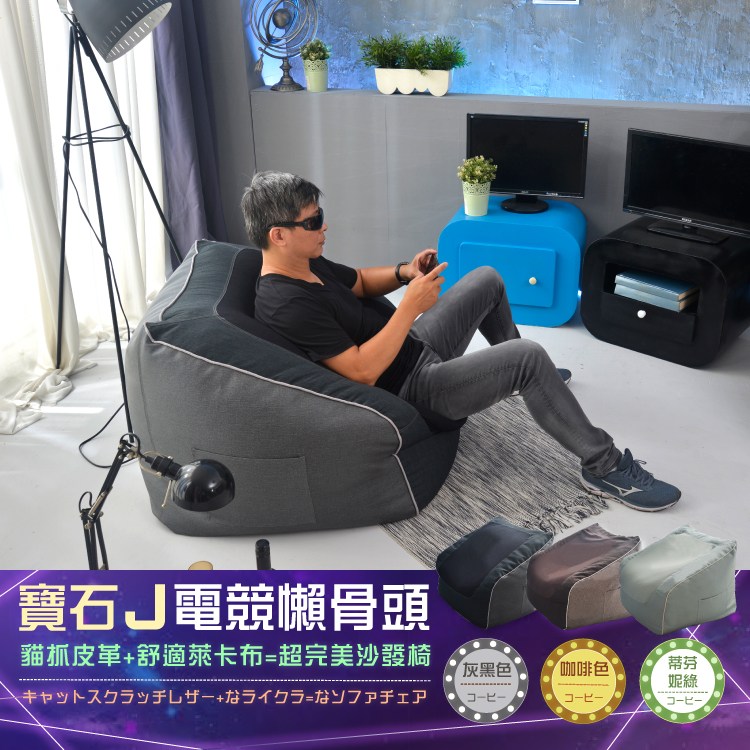 ●商品名稱:【班尼斯】 台灣獨家設計款【寶石傑電競懶骨頭】貓抓皮懶骨頭沙發椅/皮革沙發/單人造型椅!