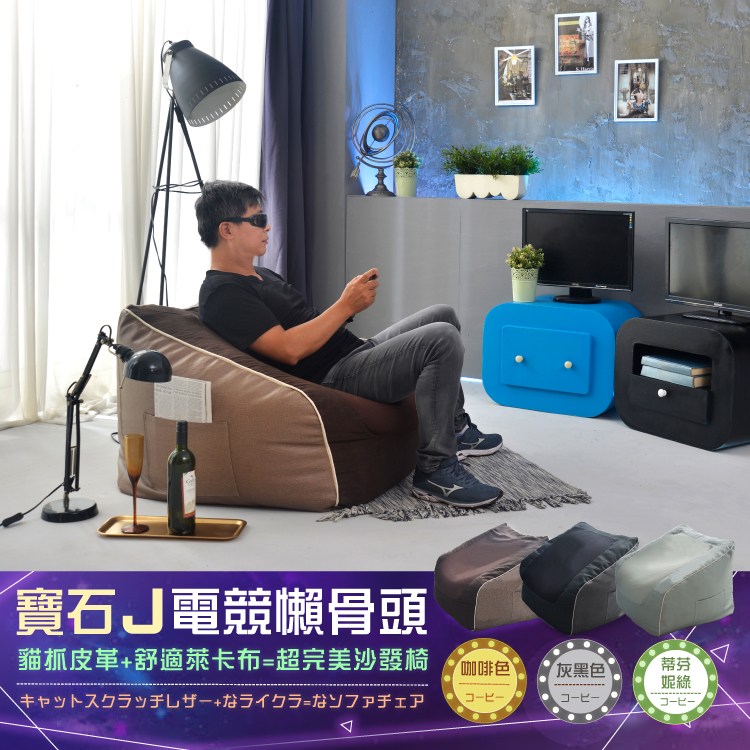 【班尼斯】台灣獨家設計款 寶石傑電競懶骨頭 貓抓皮懶骨頭沙發椅(懶骨頭)