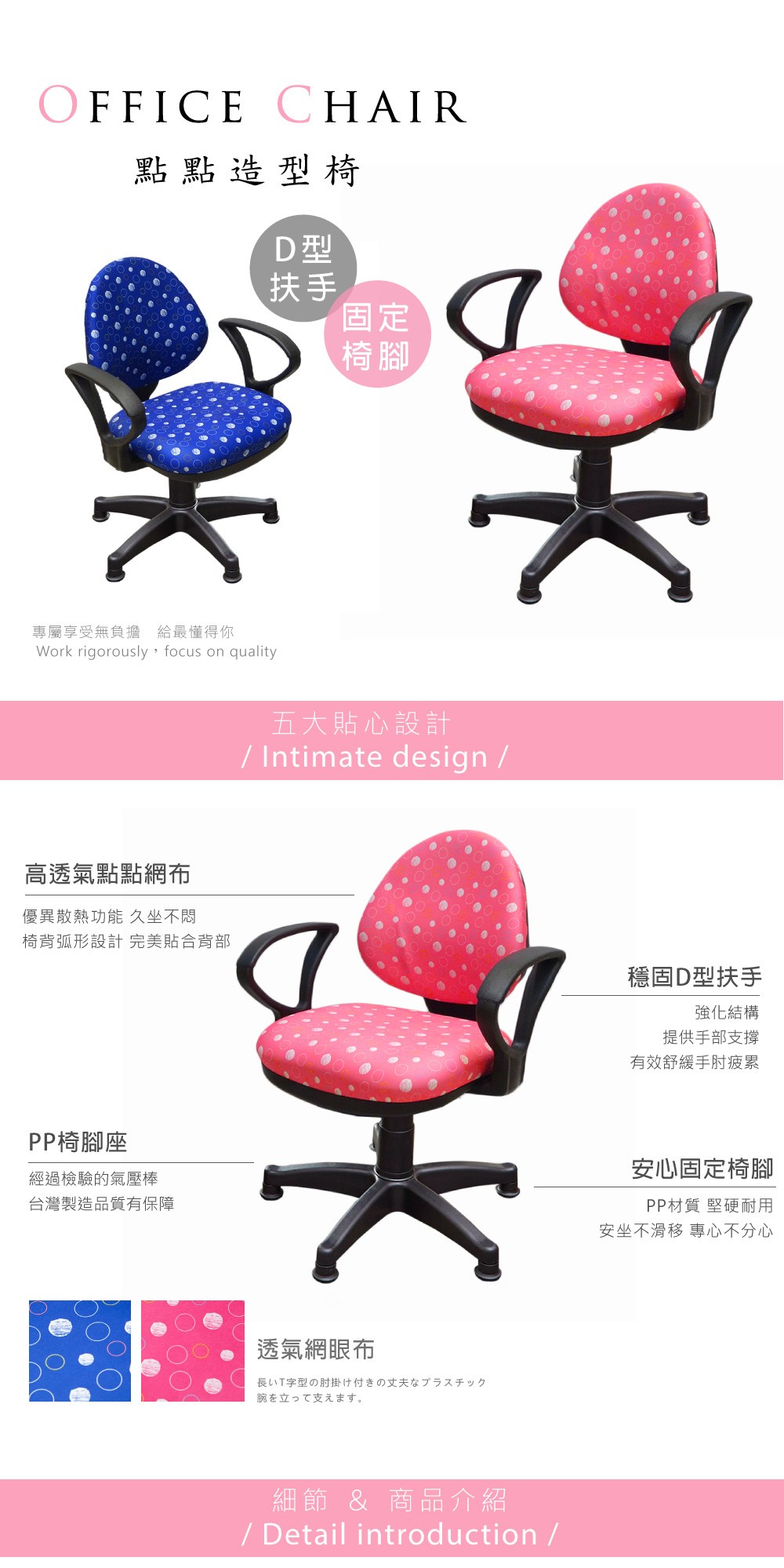 【A1】點點繽紛活動式D扶手兒童成長電腦椅-1入(箱裝出貨)粉紅色
