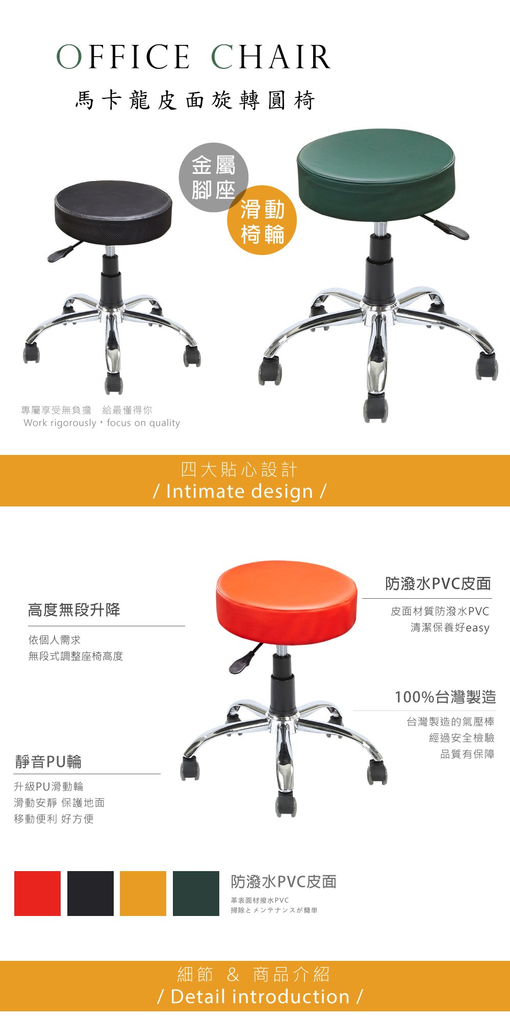 點我下載【A1】馬卡龍皮面鐵腳PU輪旋轉電腦椅/美容椅(箱裝出貨)2入黑色