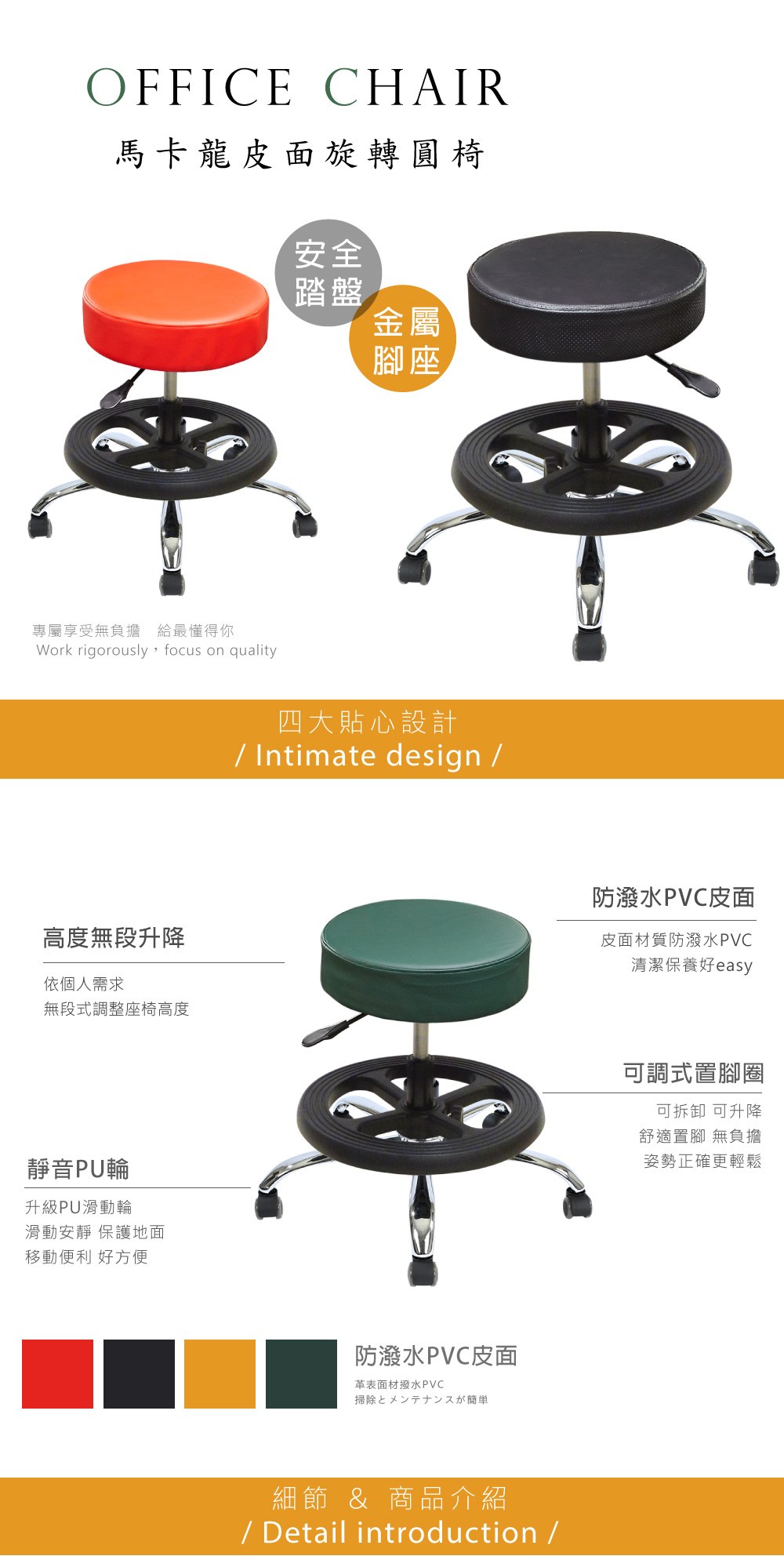 【A1】馬卡龍皮面鐵腳固定式舒適旋轉電腦椅/美容椅-附腳圈(箱裝出貨)2入黃色