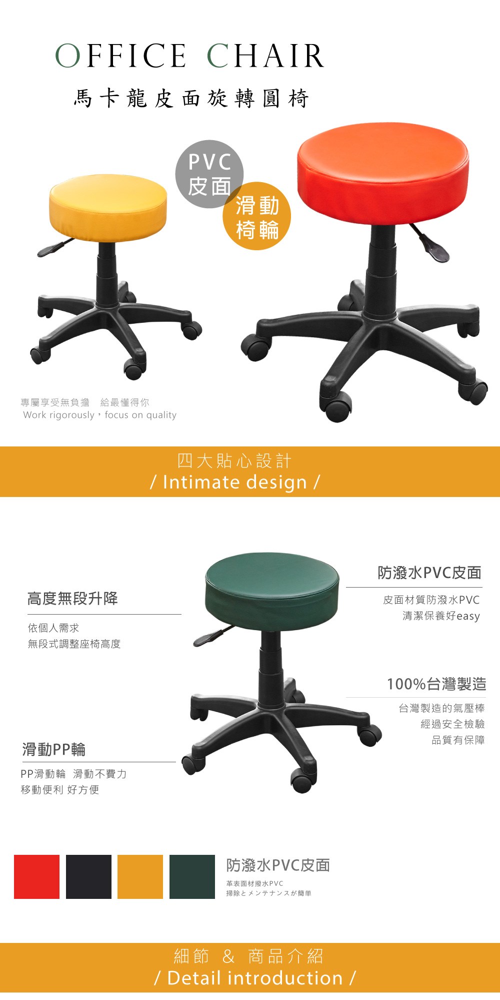 台灣製造 SGS認證 CC-03 辦公圓椅-橘(35*35*47cm)_廠商直送