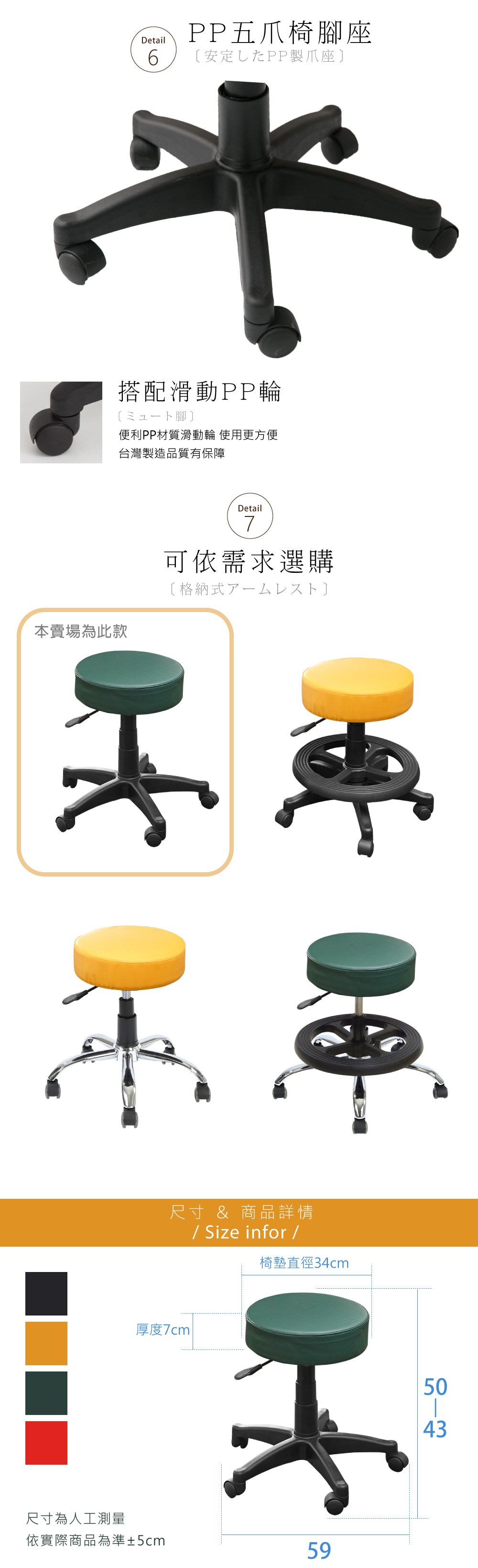 台灣製造 SGS認證 CC-03 辦公圓椅-橘(35*35*47cm)_廠商直送