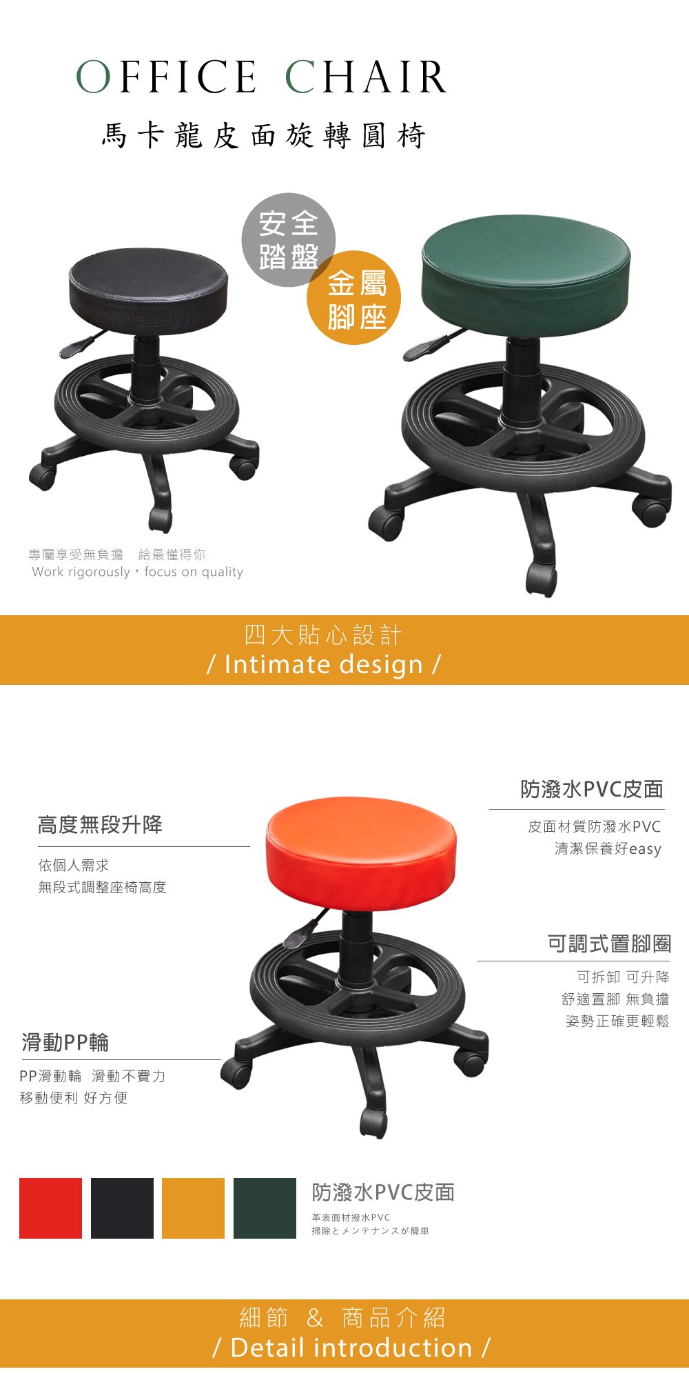 台灣製造 SGS認證 CC-03 辦公圓椅-橘(35*35*47cm)_廠商直送